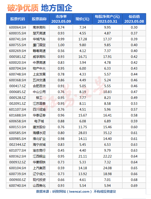 破净的优质地方国企名单